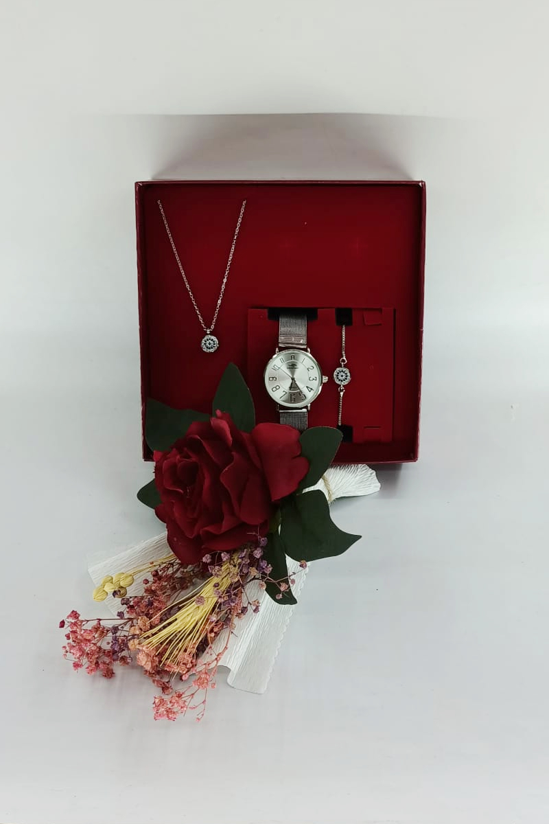 Doğum Günü Hediyesi İçin Şık Saat, Zirkon Taşlı Kolye & Bileklik Çiçek Seti Önerisi